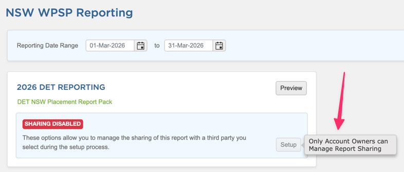 Answer: Report Sharing for the 2026 DET report can only be enabled by the designated Account Owner(s) for your organisation.